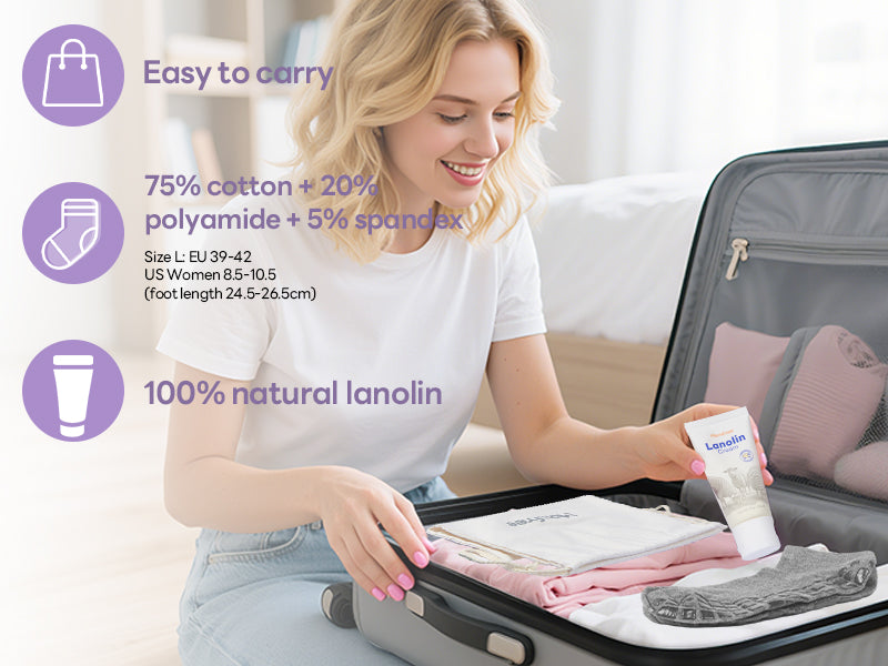 - COMPREHENSIVE CARE FOR MOM POSTPARTUM ESSENTIALS: Includes 6 pcs XL disposable underwear with 360° absorbency, no leaks, skin-friendly, and stretchy—fits waist 25"–50", height 13", roomy for postpartum belly. Comes with 30g 100% lanolin cream to soothe sore nipples and 1 pair of anti-slip grey socks (L: 39–42) for added comfort. Packed in a convenient drawstring canvas bag—easy to carry, making life with your baby simpler and more beautiful.