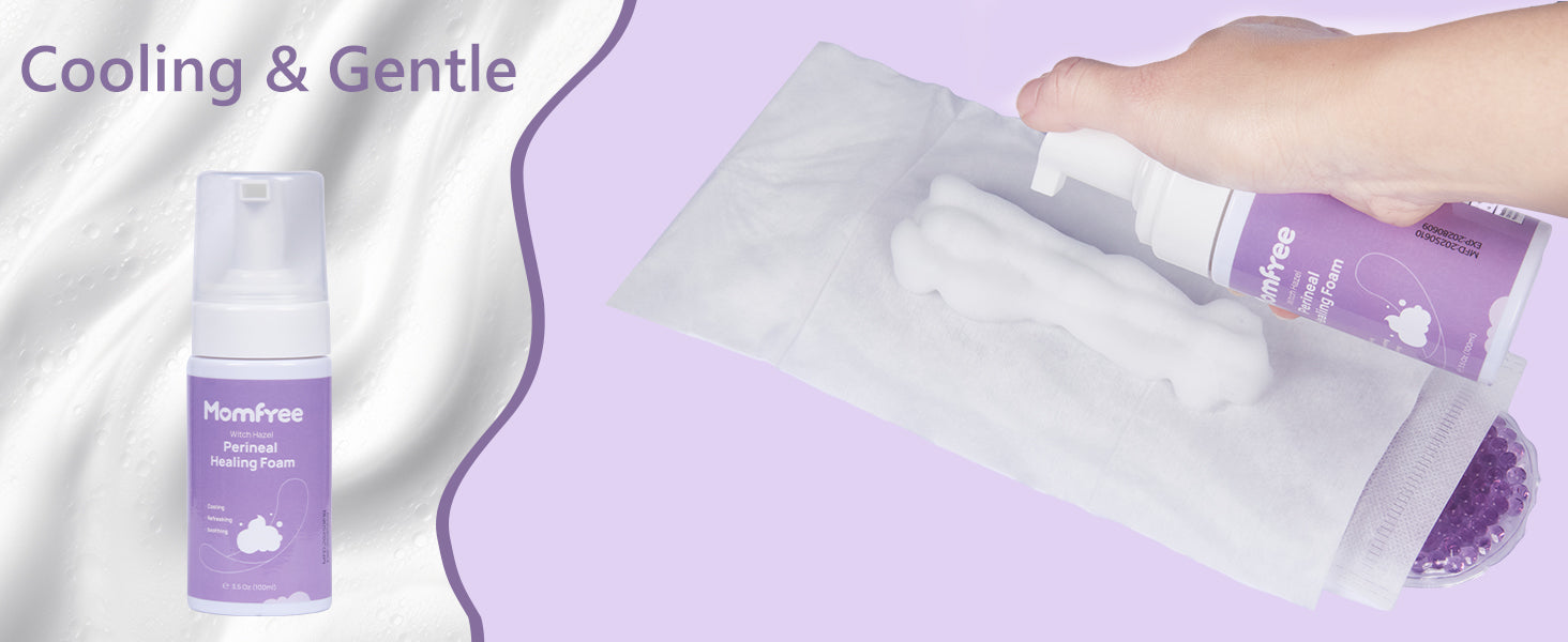 - NEW MOM'S RECOVERY MUST-HAVES: Includes a 12.2oz/360ml upside-down peri bottle with a 75° ergonomic angle and 12 spray holes for gentle, precise cleansing—no bending needed. Also features a 3.5oz/100ml witch hazel foam with natural ingredients like chamomilla recutita extract, plus 24 cooling liners. All items are free from artificial fragrance and help relieve perineal pain, swelling, and discomfort during postpartum recovery.