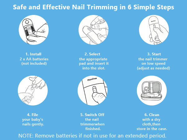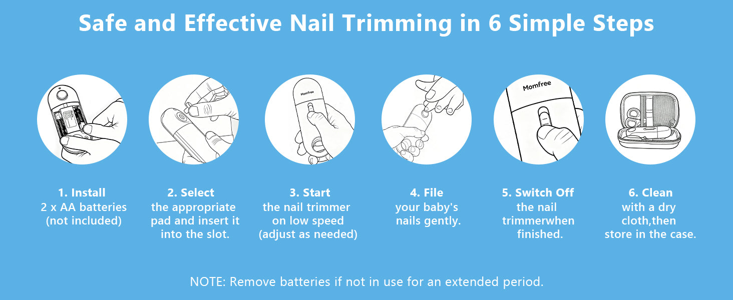 - EASY TO USE & PORTABLE: Designed for busy parents, this baby nail trimmer can be easily operated with one hand using a single control button for speed and rotation. It comes with a compact storage case, making it easy to keep everything organized and carry it in your purse or diaper bag. Perfect for on-the-go moms and dads—whether at home, outdoors, or traveling.
