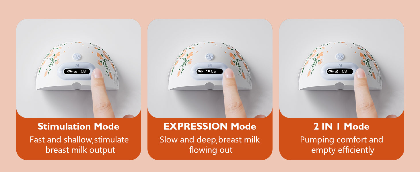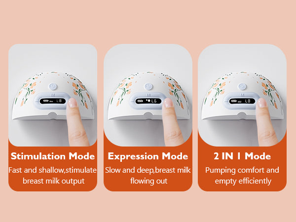 - CUSTOMIZABLE AND EFFICIENT SETTINGS: The wireless breast pump with 3 regular modes (Stimulation + Expression + 2 IN 1) and 9 levels.Indicator light shows the current mode and level set. and large 6 oz (180 ml) capacity bottle for worry-free pumping. With a sensor-equipped pump motor, the device automatically pauses when the maximum capacity is exceeded.Meets the needs of most moms.