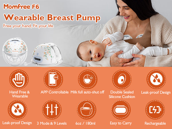 - ECO-FRIENDLY MATERIAL & LOWER NOISE: Portable breast pump hands free made of soft BPA-free food-grade silicone material,which is comfort for you and safety for your baby,can be used with confidence.Designed to operate at under 60 dB, the F6 portable breastfeeding pump ensures a quieter and more serene environment for breastfeeding.It's an essential tool for every mom!