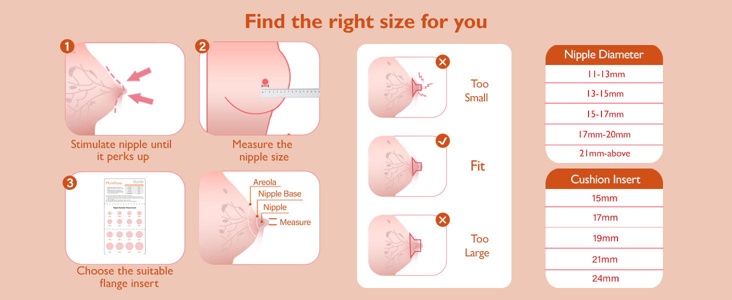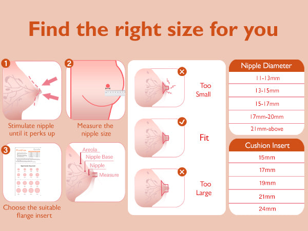 - FOCUS ON GREAT WOMEN: Many breastfeeding pump are designed to fit discreetly under clothes, enabling moms to pump anywhere, even in public or at work, without drawing attention.The pump itself is 24 mm. Set includes cushion Inserts for sizes 21/19/17/15 mm, to make more sizes for most moms to choose.