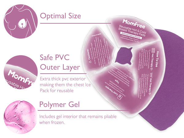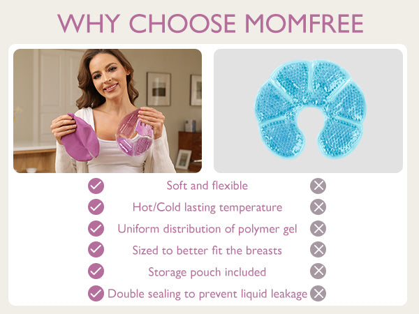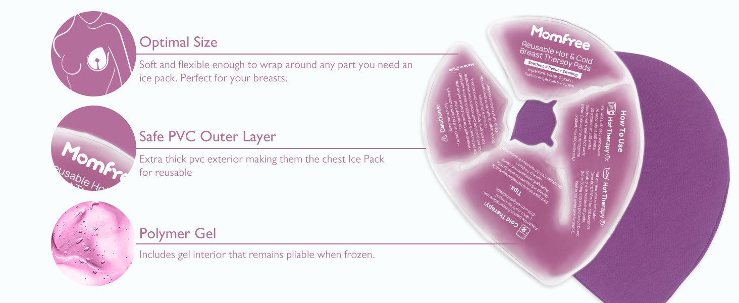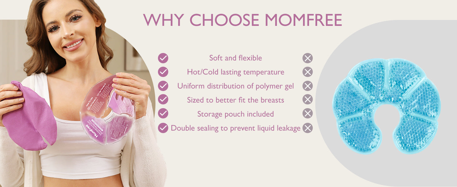 - Stay cold for longer: Momfree cold breast therapy packs for staying at a temperature significantly longer than other gel nursing pads. This means you get continuous therapy relief from swelling & discomfort.