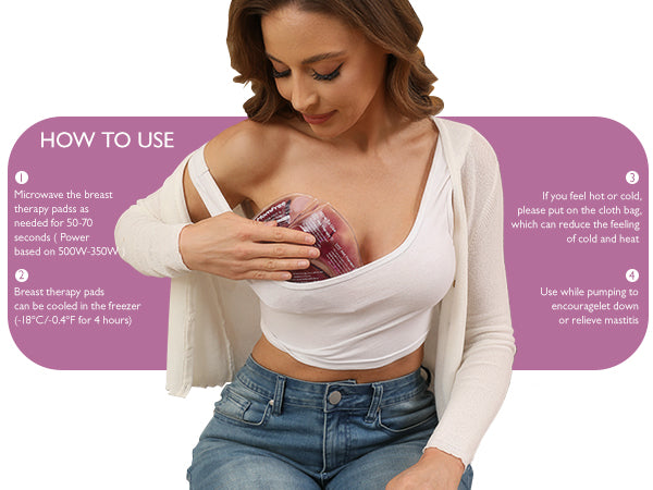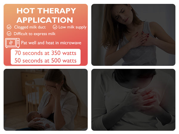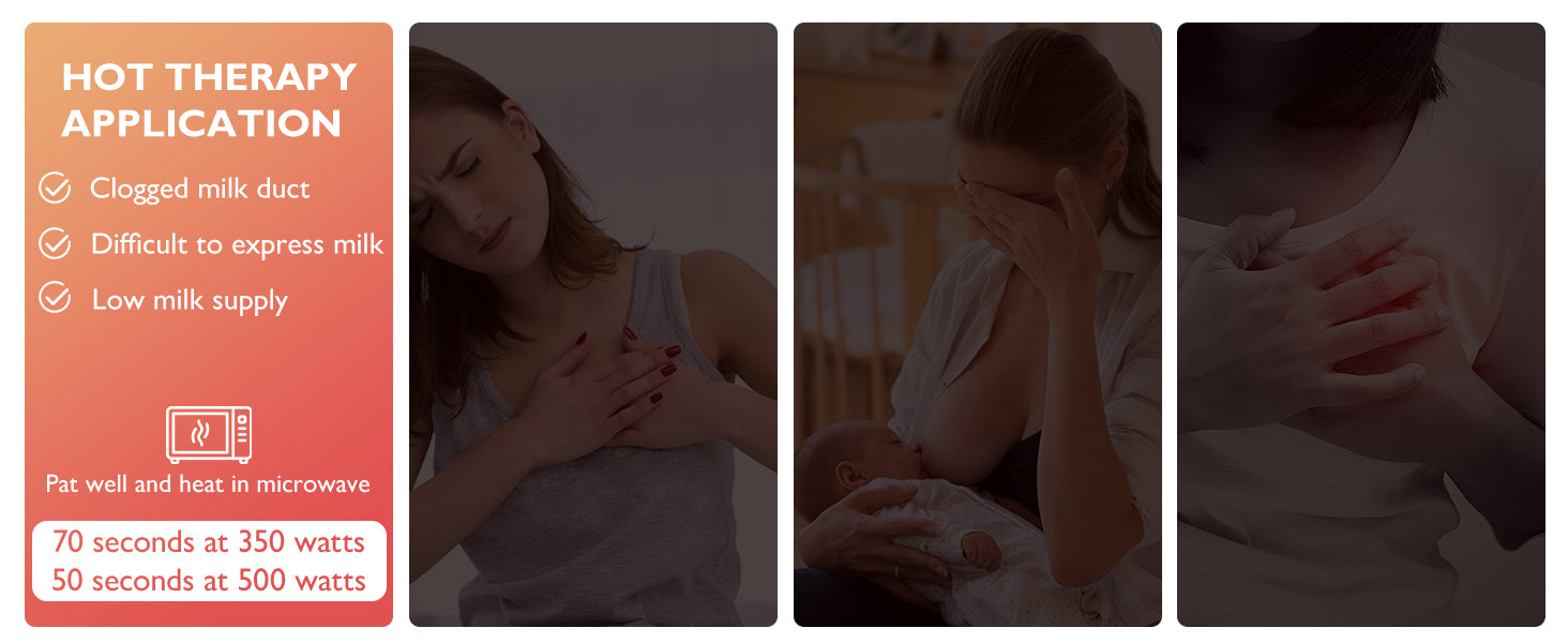 - Breast heating pads: Heat in boiling water (over 80 °C/176 °C) for 2 min or in the microwave for 70 s at 350 watts. Hot therapy helps relieve clogged milk ducts and encourages milk let-down during breastfeeding. Ideal for use before or while pumping to help you better express your milk.