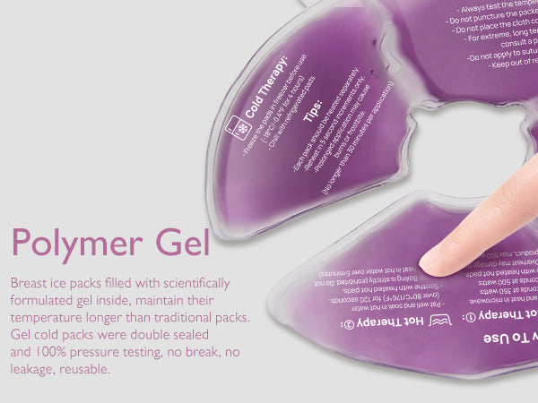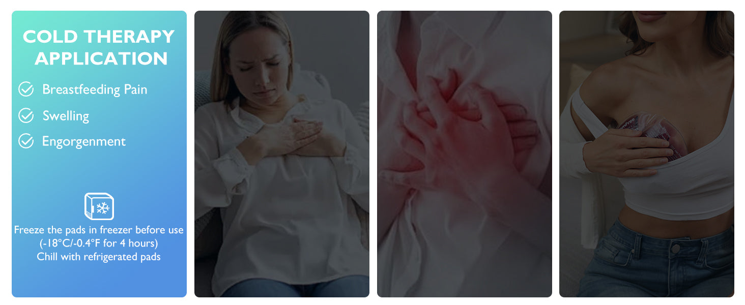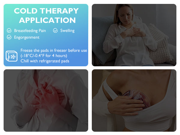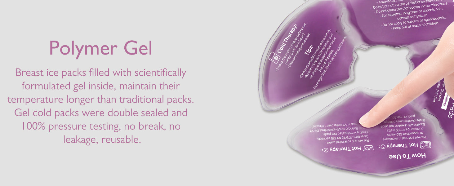 - Breast ice packs: Put the breast therapy ice pack in the freezer at -18℃/-0.4℉ for more than 4 hours. Breast ice packs to relieve swelling and pain caused by engorgement, clogged ducts, and mastitis in the early days of breastfeeding. Ideal for use after pumping to help ease your fatigue and soothe your mind.