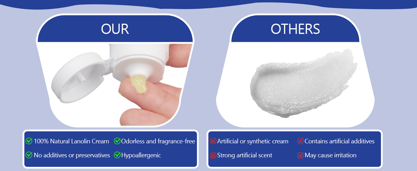 - NATURAL LANOLIN CREAM: This nipple balm is crafted from 100% natural lanolin — and nothing else. No additives, no fragrance, no need to wipe off before nursing. This simple, single-ingredient balm is dermatologist-tested and safe for even the most sensitive skin. Perfect for breastfeeding moms and postpartum healing, it helps soothe and restore dry, cracked skin fast.