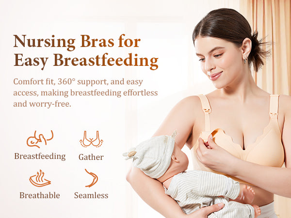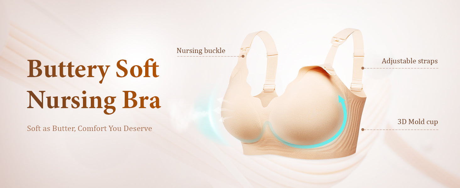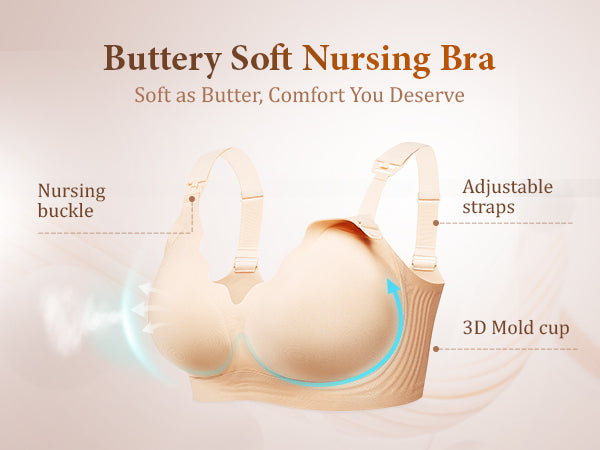 - Buttery Soft & Comfort Fit: Crafted with a luxurious nylon-spandex blend, this bra delivers a silky-smooth, skin-friendly feel that adapts to your changing body. The seamless, stretchy fabric and high elasticity ensure zero irritation during pregnancy, postpartum, or daily wear—perfect for sensitive, fluctuating breasts.