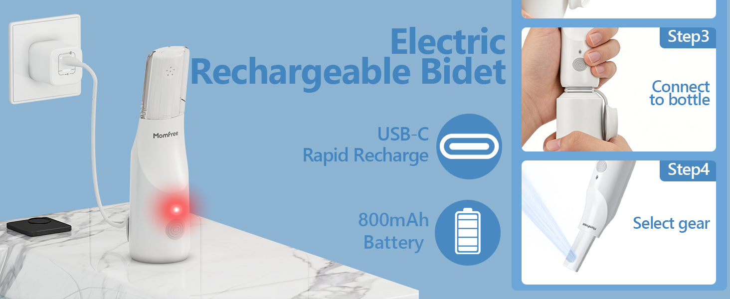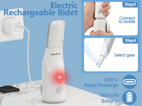 Portable Bidet for Travel - Rechargeable Electric Travel Bidet Peri Bottle with Adaptor & 3 Speed Modes, IPX7 Waterproof Portable Bidet for Women Men Baby Pregnancy Postpartum Personal Hygiene